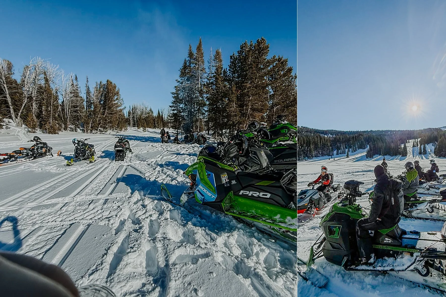 Our backcountry snowmobiling day in Taylor Fork took things even further. Deep in the Gallatin National Forest, we were challenged by fresh snow and demanding terrain, relying on each other to keep moving forward. It was exhausting, humbling, and incredibly rewarding. One of those days where you feel completely present and fully alive.